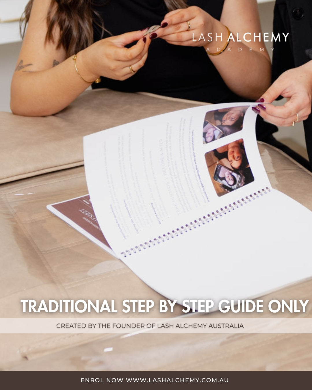 A straight-to-the-point, written step-by-step breakdown of the full Traditional Lash Lift method — in the exact sequence, our students learn inside the course and that we use every day in the salon.