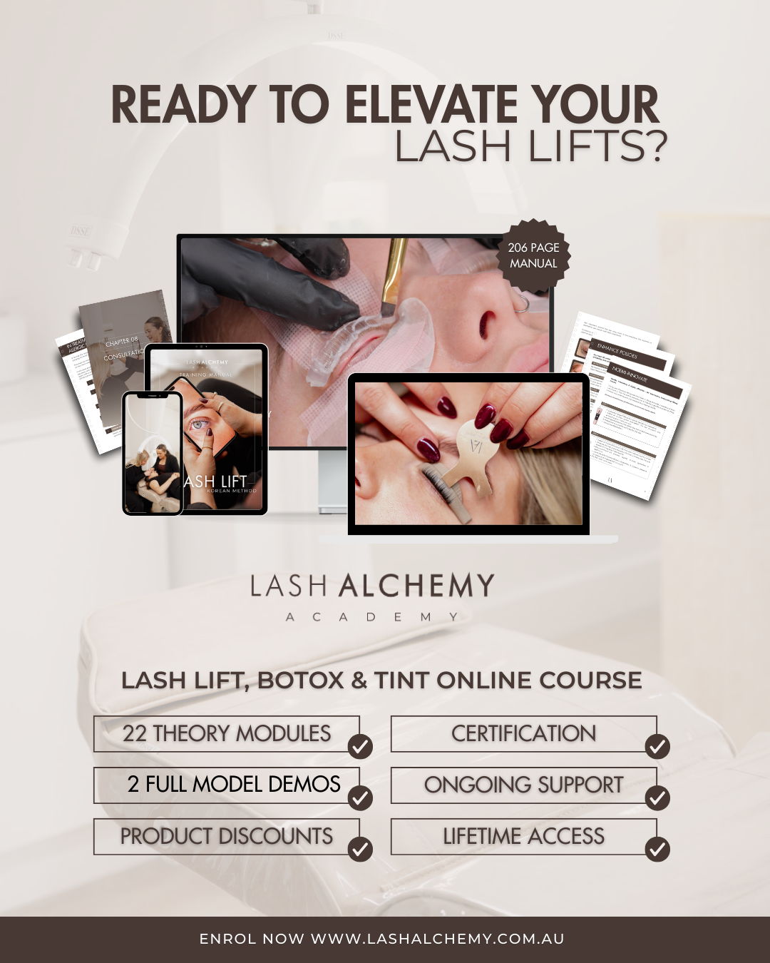 A fully comprehensive lash lift course for any skill level — learn the fundamentals, master the method, and create flawless results with confidence. The complete start-to-finish course for artists who want flawless, consistently beautiful lash lifts - without confusion, overwhelm, or outdated techniques.
